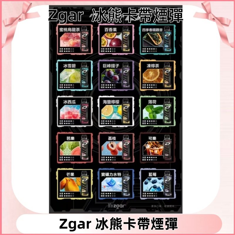 ZGAR電子煙磁吸換彈強勢登場!ZGAR15ml煙油,持久續航高達約 15000 口,冰熊卡帶專屬主機搭載雙網狀加熱芯 + 優質陶瓷霧化芯,還原每一口的真實風味。ZGAR PROJECT-D主機搭配智慧 LED 螢幕,電量、功率、口數一目了然。搭配700mAh電池,外出無憂。無論新手還是老玩家,都能享受細膩順滑、隨心可調的極致體驗!